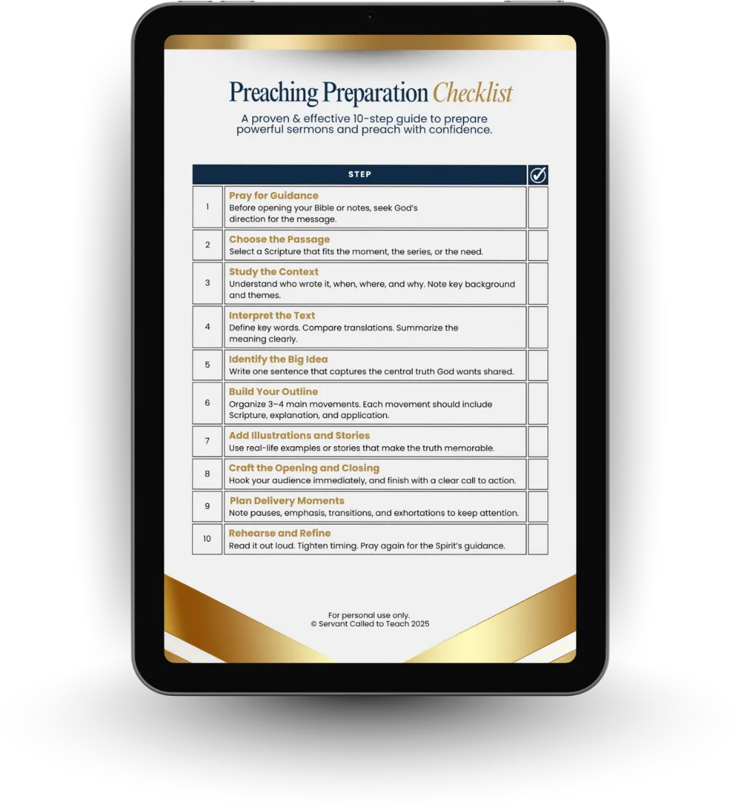 The Word is in your heart… but sometimes organizing it into a sermon feels overwhelming. This checklist gives you structure so you can focus on what matters: hearing from God and delivering His message with clarity.